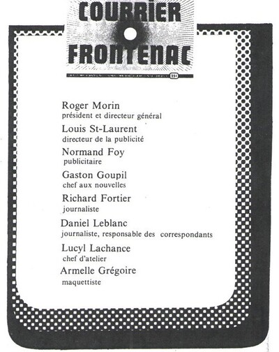 Ce qui fait le succès du Courrier de Frontenac, c'est la jeune équipe composée de personnes animées du désir de produire un bon journal non partisan afin que la population soit bien informée. Il existe à cette époque une véritable concertation entre les hommes et femmes d'affaires. Tout est possible entre nous et au lieu de penser à notre petite personne, nous travaillons tous ensemble à développer la région. La création de ce journal devient l'outil pour communiquer notre enthousiasme à la population pour qu'elle sache que les gens qui créent de l'emploi ce sont les bâtisseurs et non les politiciens.