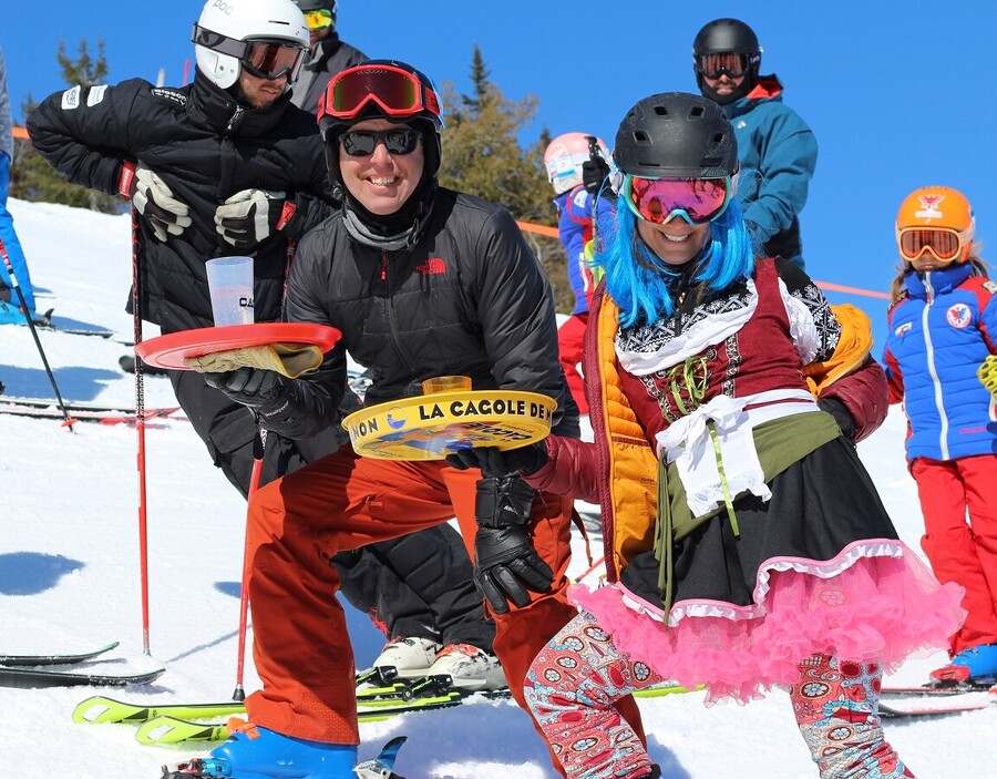 Certains déguisés et sans bâton, d'autres sur des skis très affûtés, les spectateurs ont eu droit à un spectacle haut en couleur - le tout agrémenté d'un bon GIN SUPER SONIC de la Distillerie Du Quai.