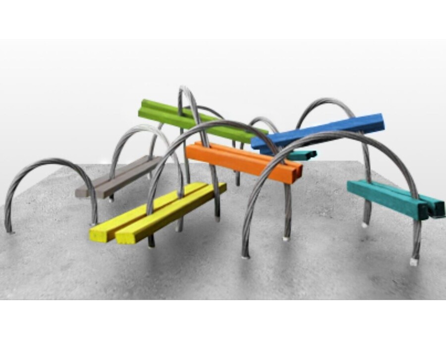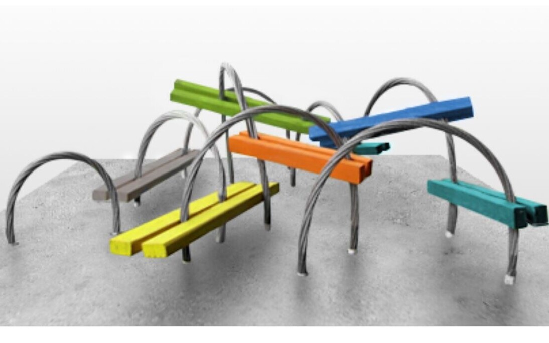 L'oeuvre retenue consiste en des torons de câbles dont chaque extrémité sera fixée au sol afin de créer des arches de différentes dimensions qui, fixées à des pièces de bois, formeront des bancs, comptoirs et tables qui créeront un espace inusité et agréable à fréquenter pour la population. Le caractère à la fois fonctionnel, ludique et faisant des rappels au passé industriel de l'histoire de la ville ont fait de Synergie Sol-Air un projet porteur pour le concours d'oeuvre d'art public - Stimul'Art.