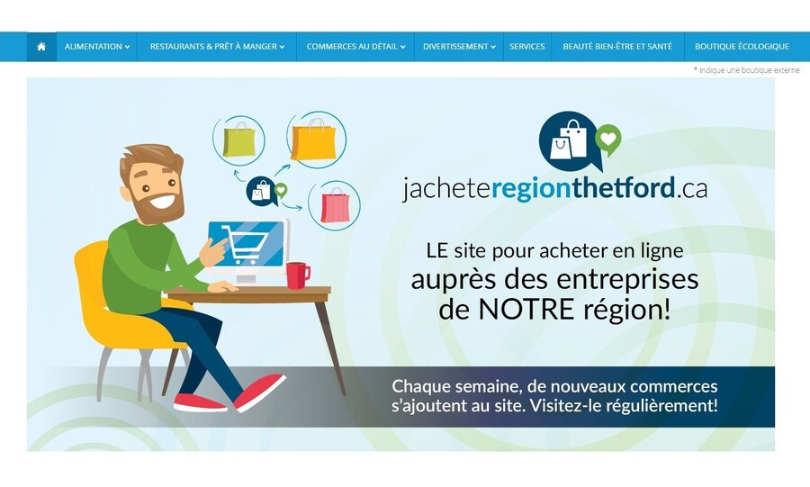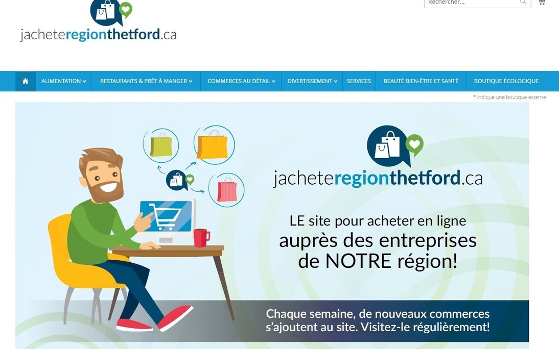 Rappelons que www.jacheteregionthetford.ca est disponible gratuitement aux commerçants de la région, jusqu'au 1er février 2021, grâce à la participation financière de la CCITM, la SDE région Thetford, la SADC de l'Amiante, Desjardins ainsi que la participation d'Héritage centre-ville et la Chambre de commerce de Disraeli.