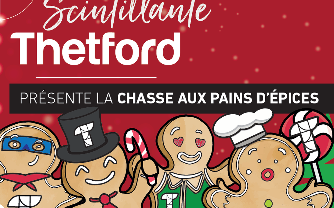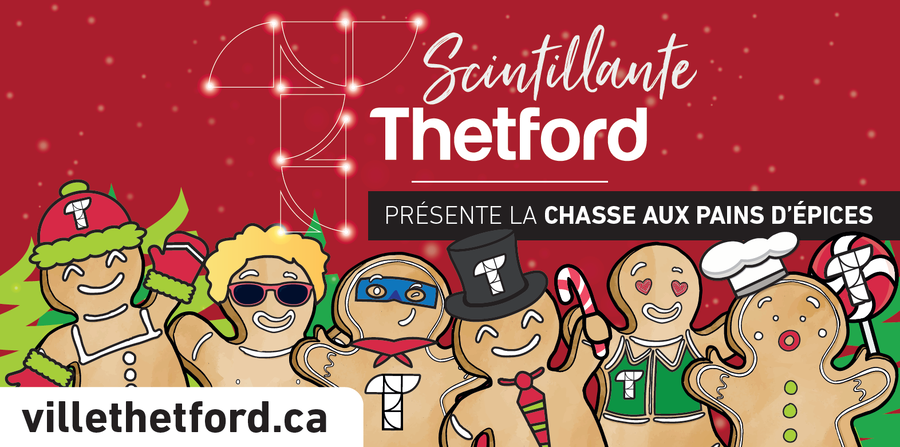 Thetford Mines - 4 décembre 2020. Dans le cadre du projet « Scintillante Thetford » lancé récemment, la Ville de Thetford Mines est très heureuse d'annoncer l'arrivée des petits bonhommes de pain d'épices! Au cours des prochaines semaines, ils envahiront le territoire pour faire découvrir leur fabuleux monde à travers des activités amusantes et stimulantes, dont la fameuse Chasse aux pains d'épices.