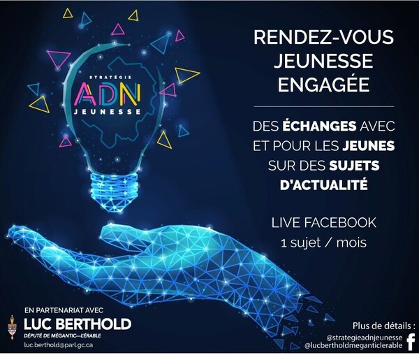 Les Rendez-vous jeunesse engagée ont eu lieu une fois par mois depuis janvier et se termine en juin. « C'est une occasion en or pour échanger avec les jeunes de la région, de partager leurs préoccupations et de me sensibiliser, à titre de député fédéral, aux enjeux qui leur tiennent à coeur. Encore une fois, j'invite la jeunesse à venir s'exprimer. Qu'est-ce que vous trouvez qu'il manque comme offre de service pour les jeunes familles dans la région ? Est-ce que le rôle de la mère est valorisé aujourd'hui ? Est-ce que vous avez déjà été jugés sur vos choix en tant que parents ? Quelle réalité vivez-vous actuellement en tant que jeune parent ? Est-ce que la COVID-19 a modifié votre situation ? », a conclu M. Berthold.
