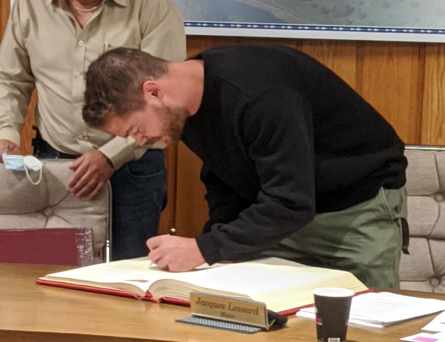 Disraeli 15 septembre 2021. C'est lors de l'assemblée régulière du conseil municipal de la ville de Disraeli du 7 septembre dernier que l'athlète Joey Lussier a été reçu pour signer le livre d'or en tant que citoyen s'étant démarqué et avoir fait rayonner la communauté du Secteur sud de la MRC des Appalaches.