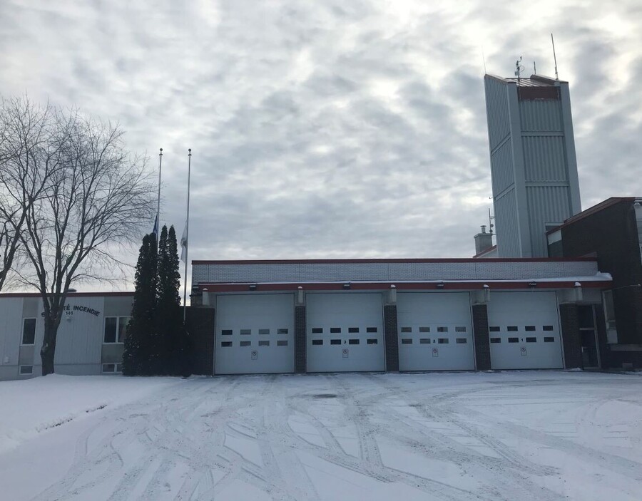 Thetford Mines, le 20 décembre 2021. Deux mois seulement après le décès tragique d'un pompier en devoir à la Ville de Montréal, c'est à Boischatel qu'un deuxième pompier a perdu la vie en combattant un feu de résidence le 18 décembre dernier. En soutien à la famille et aux proches de la victime, le Service de la sécurité incendie a choisi de mettre en berne les drapeaux de sa caserne de Thetford.