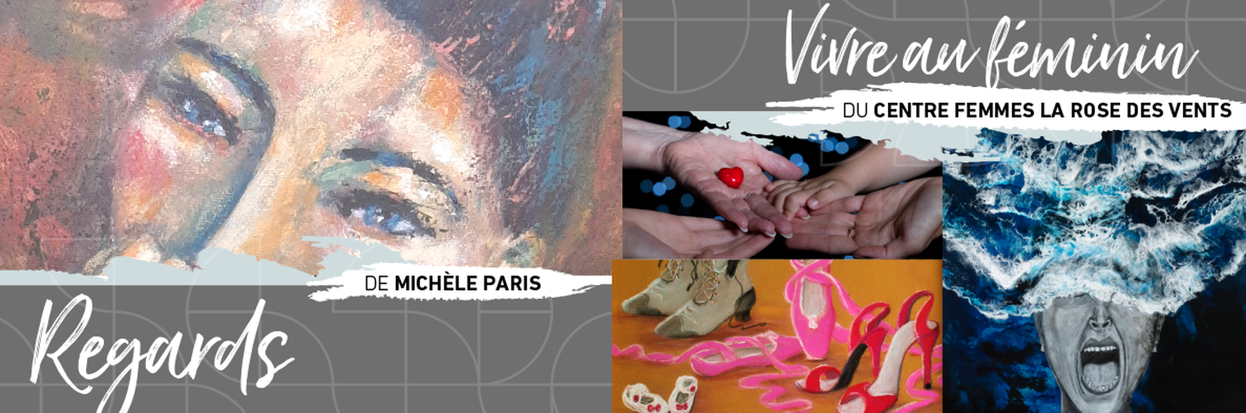 Peintre autodidacte, Michèle Paris a vu ses œuvres présentées dans plusieurs galeries et symposiums. L'artiste est en constante expérimentation par le médium, le support ou le sujet, une quête perpétuelle pour saisir et exprimer l'essence de ce que les personnes et la nature ont à off-rir. Au terme d'une période d'exploration avec l'acrylique liquide sont apparues deux têtes : la femme et l'oiseau. C'est ainsi qu'ont débuté l'existence des personnages et leur représentation intimiste. Regards propose une communication non verbale entre la femme et l'oiseau, entre l'observateur et les personnages de l'œuvre. Une exposition où la couleur s'impose et où les textures rendent, avec beaucoup d'émotions, les personnages et leur univers.