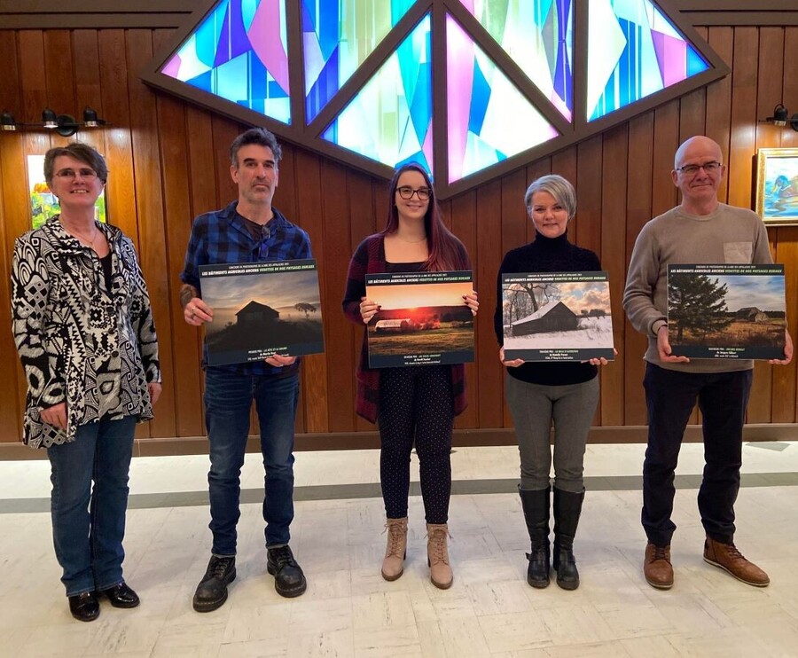 Photo : Les quatre gagnants de la première édition du concours de photographie annuelle de la MRC des Appalaches en compagnie de la préfète, Madame Jacynthe Patry. De gauche à droite : Madame Jacynthe Patry, préfète de la MRC des Appalaches, Monsieur Martin Huot (1er prix), Madame Karell Faucher (2e prix), Madame Danielle Parent (3e prix) et Monsieur Jacques Gilbert (4e).