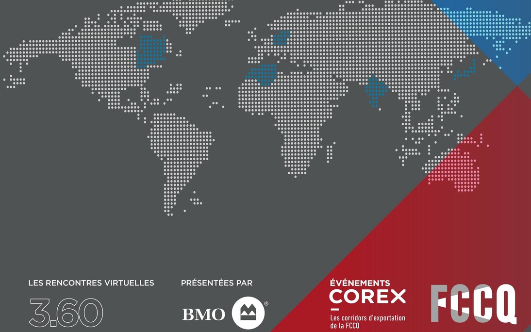 Les rencontres 3.60 COREX, présentées en collaboration avec le réseau des chambres de commerce du Québec et les organismes régionaux de promotion des exportations (ORPEX), visent à fournir aux dirigeants et chefs d'entreprise de l'information stratégique et des conseils judicieux pour les aider à s'adapter au nouvel environnement d'affaires dans lequel ils évoluent dorénavant à l'échelle nationale et internationale.