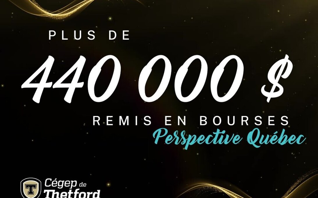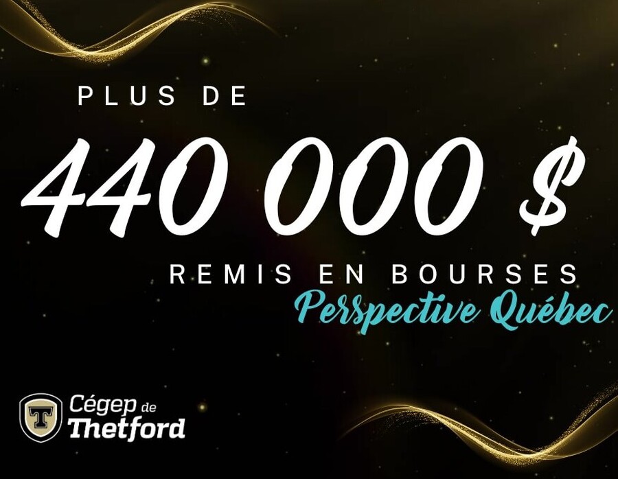 Thetford Mines, le 5 mai 2023 Au cours de la session d'hiver, 294 étudiants du Cégep de Thetford ont pu recevoir un premier versement de leur bourse Perspective Québec pour la réussite de leur session d'automne. Ces bourses, d'une valeur de 1 500$ chacune, totalisent ainsi 441 000$ qui apporteront un coup de pouce considérable aux étudiants.