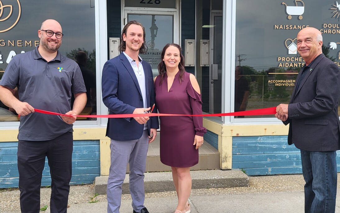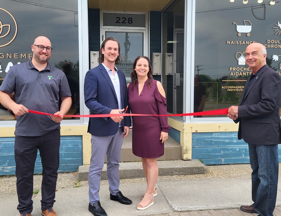Thetford Mines, le 13 juin 2023. Accompagnant les gens à maintenir ou retrouver l'équilibre personnel-familial-professionnel à travers les divers passages de vie, les propriétaires d'Accompagnement Alex et Alex, Alexandra Grégoire et Alexandre Genest, ont procédé ce mardi 13 juin à l'ouverture officielle de ses nouveaux locaux. L'entreprise s'est installée au centre-ville de Thetford au 228, rue Notre-Dame Ouest afin de pouvoir accueillir leur clientèle dans un milieu neutre, accueillant et chaleureux.