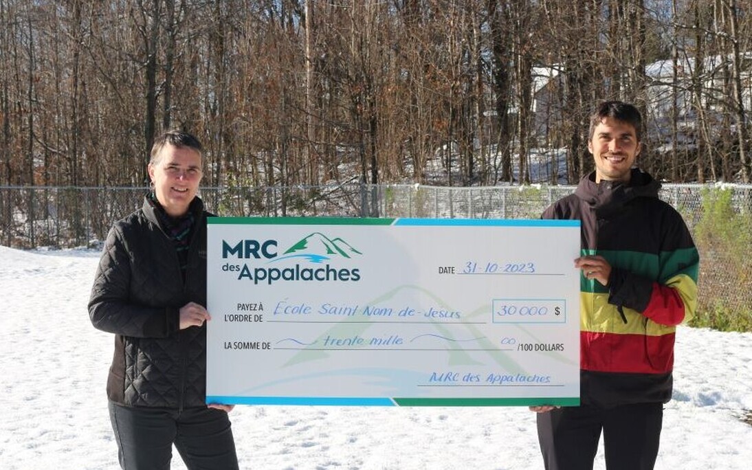 Thetford Mines, le 7 novembre 2023. - Dans le cadre de son appel à projets pour le Fonds plein air 2023-2025, la MRC des Appalaches est ravie d'annoncer l'octroi d'une aide financière de 30 000 $ à l'école Saint-Nom-de-Jésus située à Beaulac-Garthby. Ce montant servira à l'aménagement d'une classe extérieure qui permettra de bonifier le programme de pédagogie par le plein air.