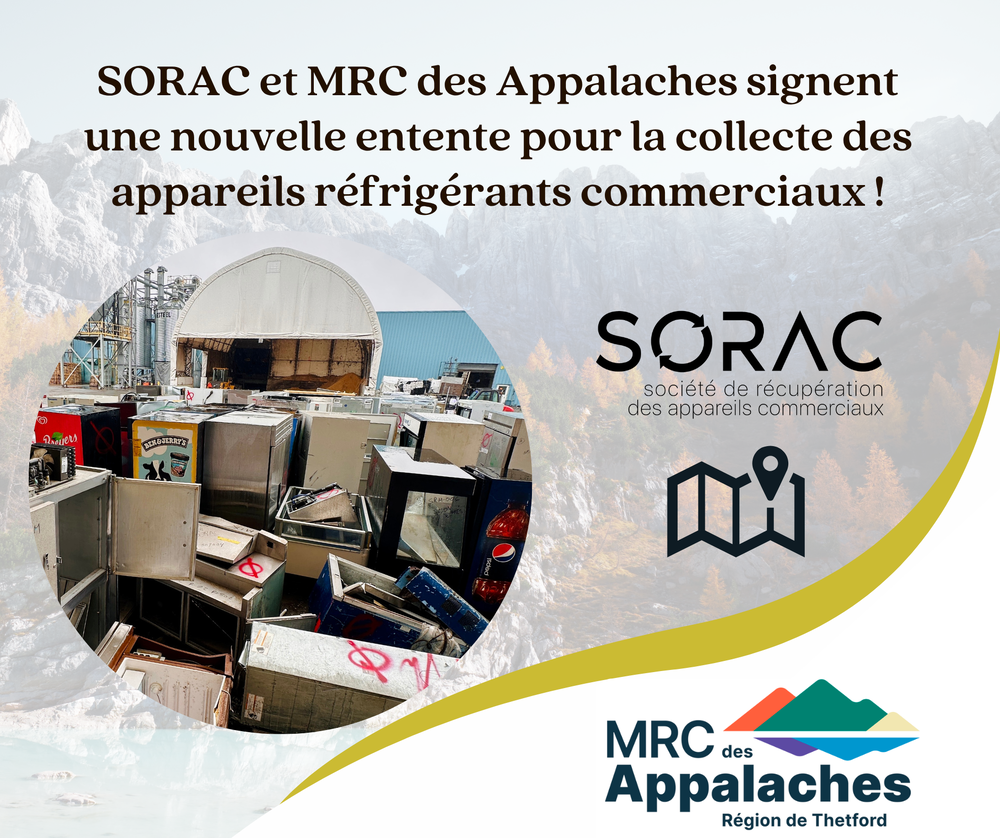 La MRC des Appalaches, en collaboration avec la SORAC, offre maintenant aux commerces et aux institutions de la région la possibilité de déposer leurs appareils réfrigérants en fin de vie dans l'écocentre désigné.